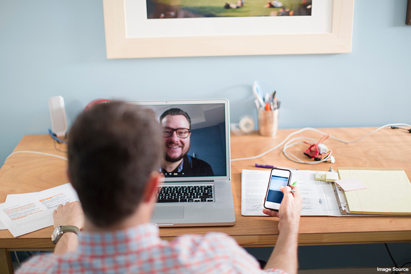 Man sitting at desk making video call How many video conferences have you been in during the last 30 days? Credit: Image Source Image Source