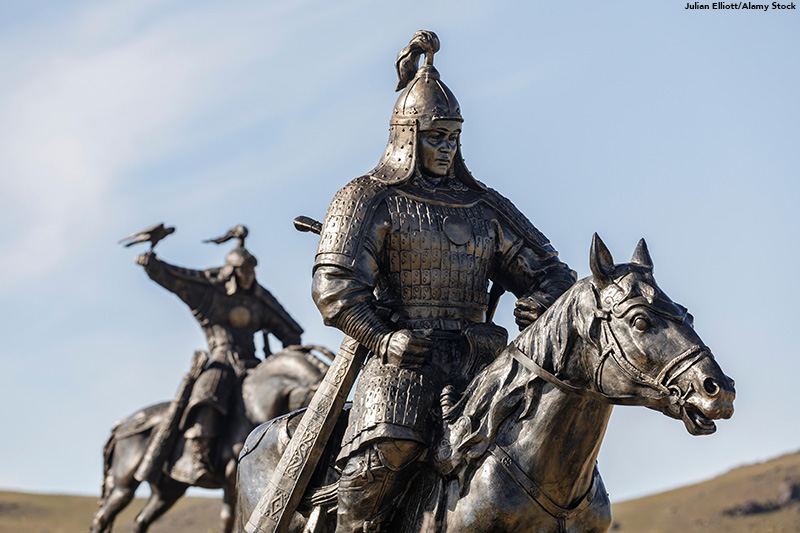 Mongolian warrior statues in Mongolia, Asia. Mongolian warrior statues in Mongolia, Asia. W9WEMD Mongolian warrior statues in Mongolia, Asia.